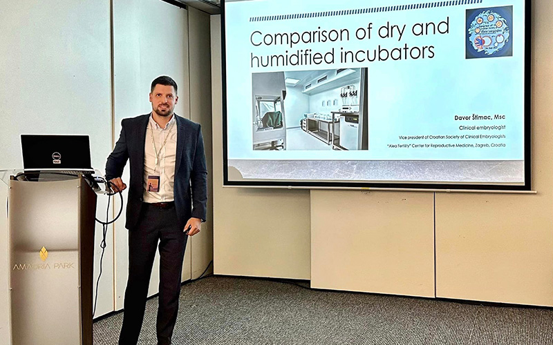 Prim.dr.sc. Miro Šimun Alebić održao je predavanje “Idiopatska neplodnost - nove ESHRE smjernice”, a naš klinički embriolog Davor Štimac objasnio je “Usporedba suhih i ovlaženih inkubatora”.